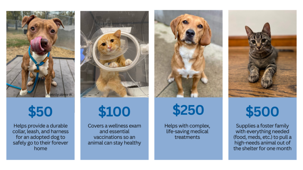 Your gift provides food, supplies, medical care, and comfort for the city’s most vulnerable animals.